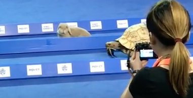 うさぎちゃん、一歩リードするも、カメラ目線に!!!