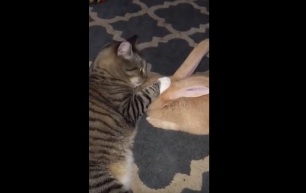 もっと舐め舐めしてっ!!うさぎちゃんとねこちゃんの仲良し映像。