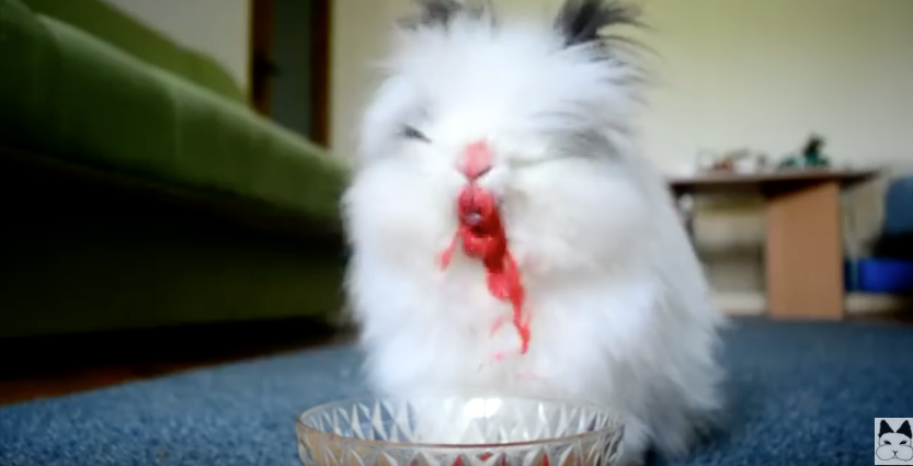 ぎょえ〜!!口のまわりが〜!!お食事マナーの悪いうさぎちゃん