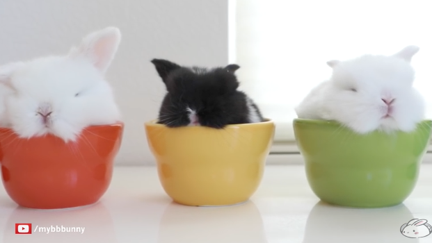 カラフルお椀にスッポリな、子うさぎちゃん達