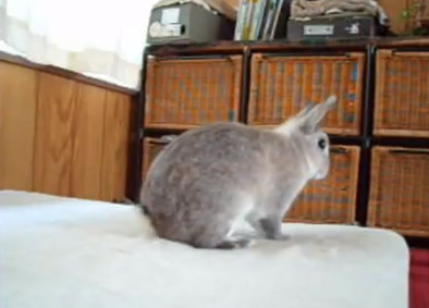 ベットの上で走り回るうさぎちゃん。