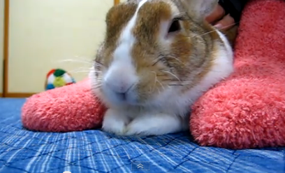 はい、飼い主様、うさぎちゃんの頭をなでなで〜。