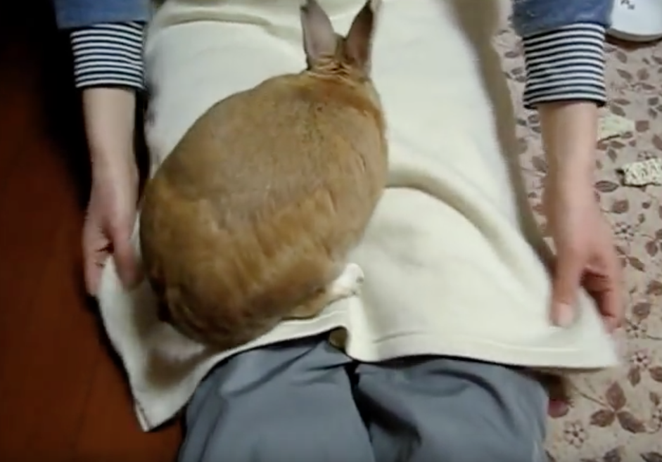 これやってほし〜!足の間でコテッ!!!な、うさぎちゃん